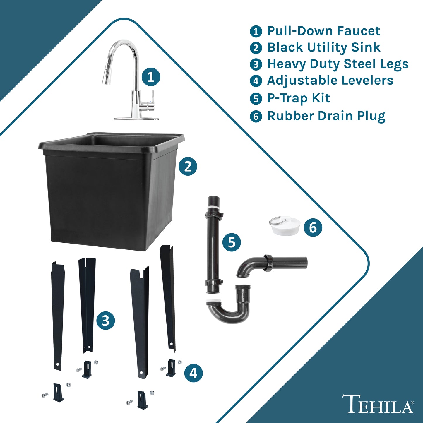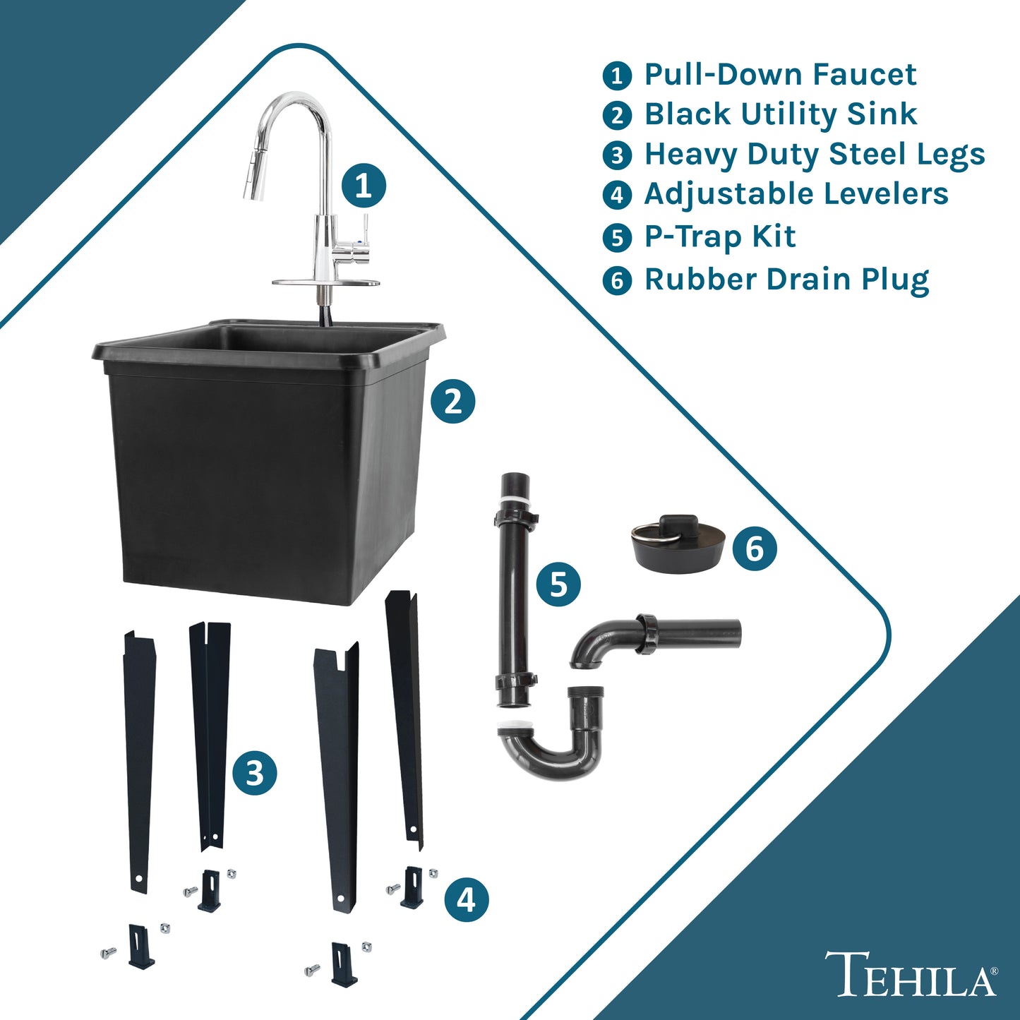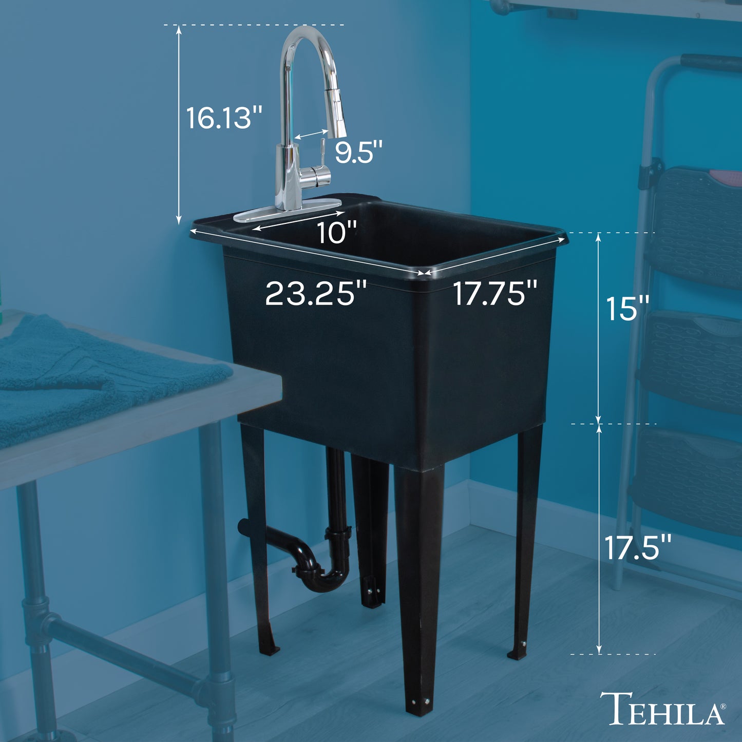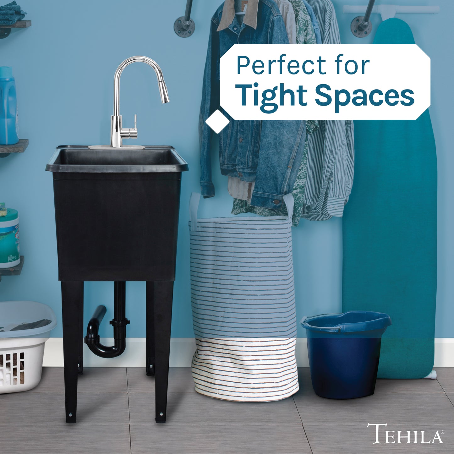 Yes, you can love your laundry room. Tehila’s space saving utility sink, with its ultra-slim profile, will slide into tight spaces that can't accommodate a full-size tub. This freestanding space saver unit has all of the features of our classic utility sinks: sturdy metal legs with floor levelers, 7-preformed knock out holes for faucets and accessories, and an extra-deep tub.