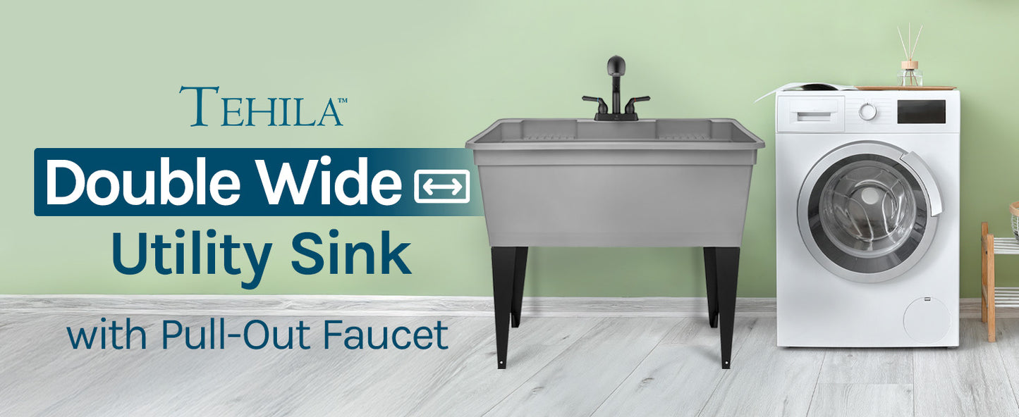Incorporate the Tehila Freestanding Double-Wide Utility Sink with Pull-Out Faucet into your space to experience the perfect blend of form and function. Elevate your utility room sink game with Tehila, where quality and practicality meet.