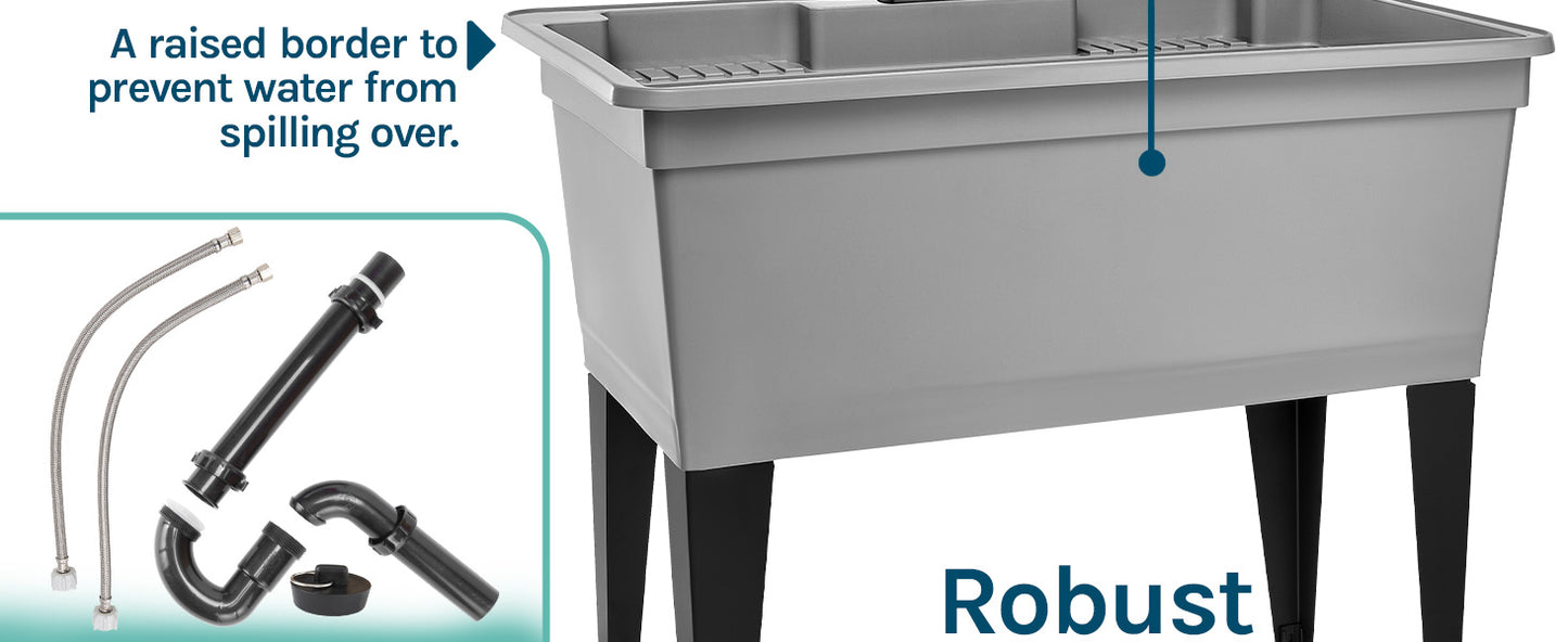 Designed for homeowners, renters, pet owners, DIY enthusiasts, crafters, property managers, builders, and commercial spaces, it suits those with larger homes, garages, or utility areas who prioritize both style and functionality. Ideal for pet washing, it appeals to pet owners looking for convenient bathing solutions. Whether you’re tackling projects like painting, gardening, or repairs, the sink’s durability and size make it indispensable. For professionals looking to enhance laundry rooms in multi-family housing units or residential properties, this utility sink adds value and practicality. It’s also great for small businesses, like pet groomers, veterinarians, or cleaning services that require a spacious sink for daily operations.